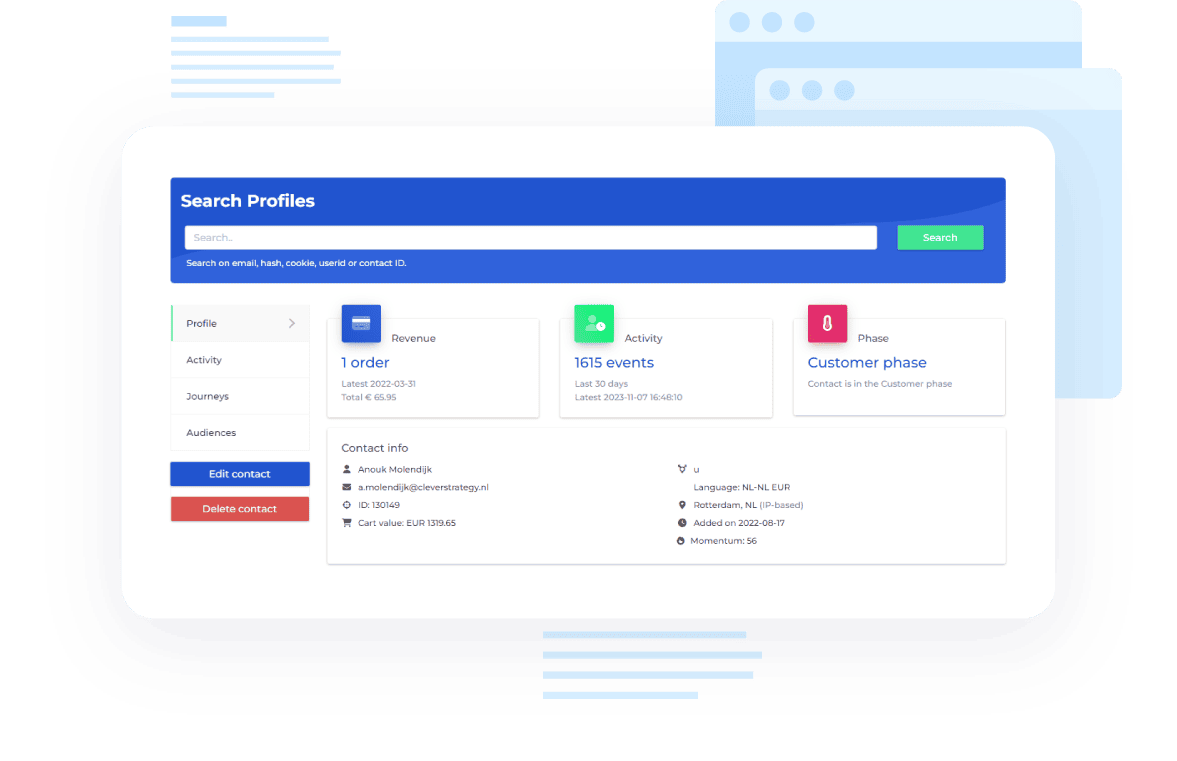 Het grote voordeel van het gebruik van Spotler Activate als CDP is dat je alle klantdata zelf verzamelt en beheert. Het stelt je in staat om je eigen database met first party en zero party data op te bouwen.